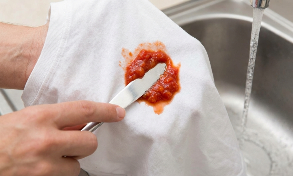 How to Get Tomato Sauce Out of Clothes Using Flushing Method