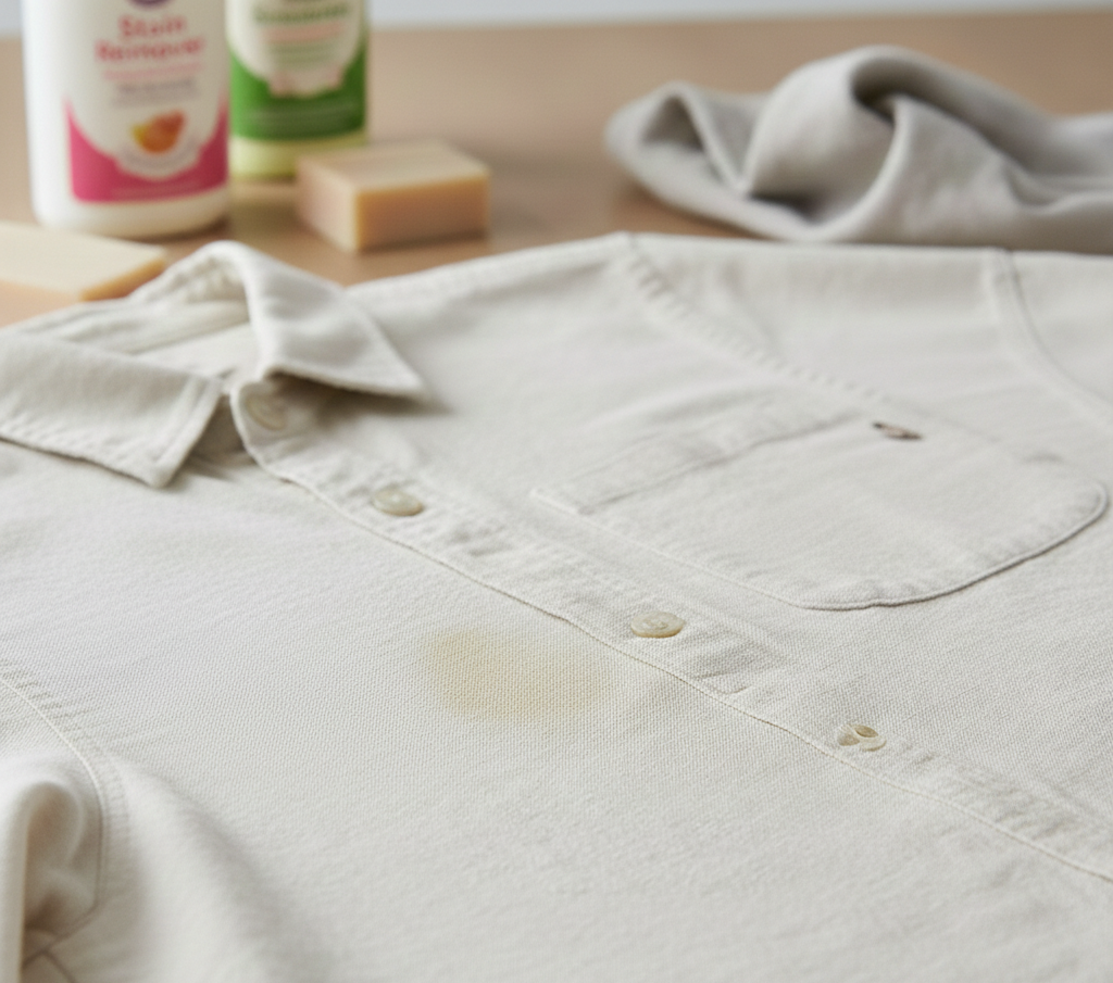 This is why stains often appear faint before washing, then darken after drying. Once heat sets the stain, removal becomes far more difficult. Always air-dry stained garments until you’re certain the stain is gone.