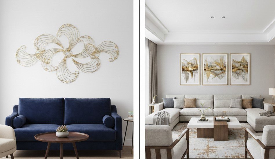 How metal wall art influences visual balance in a room
