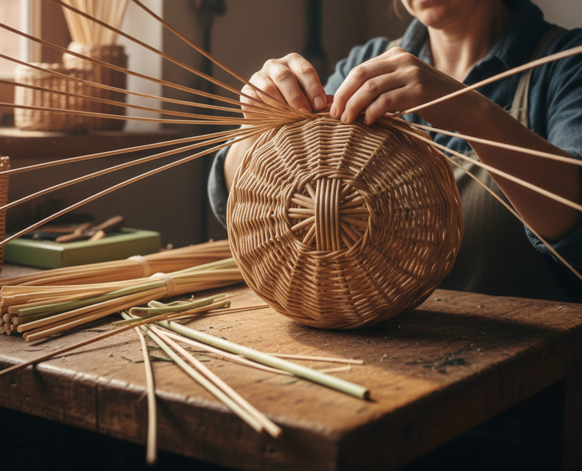 Seagrass is chosen for texture and sustainability. Rattan is chosen for shape flexibility. Wicker describes the method, not the substance.